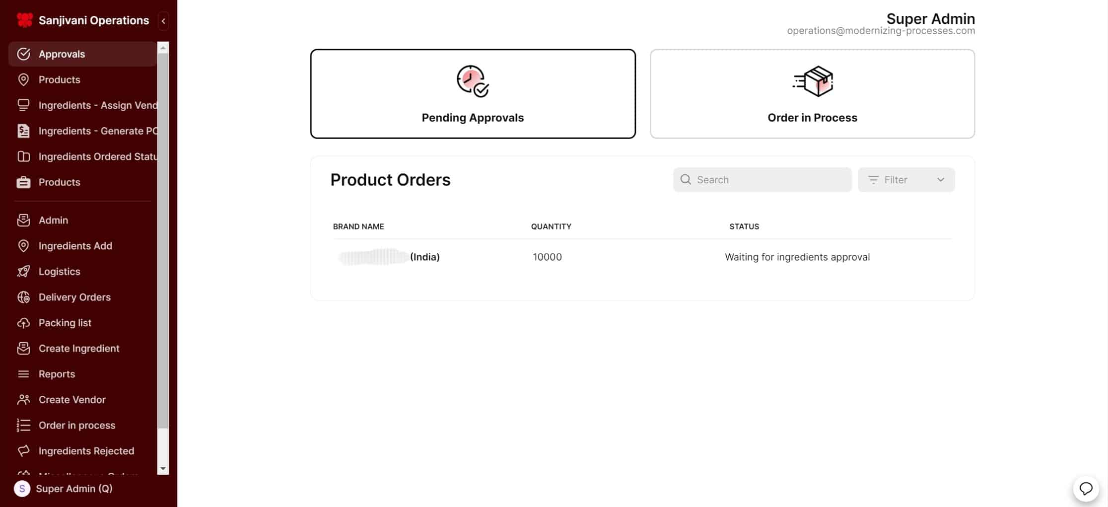 6. Multi-ingredient approval (Super-admin feature): They can approve all, or approve selected or approve one at a time ingredients of all orders.
